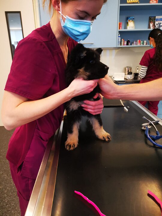 Robin und Welpen