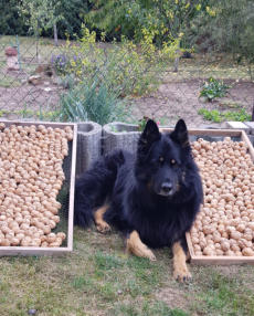 Papa Andy bewacht derweil die hauseigene Baumnussernte
