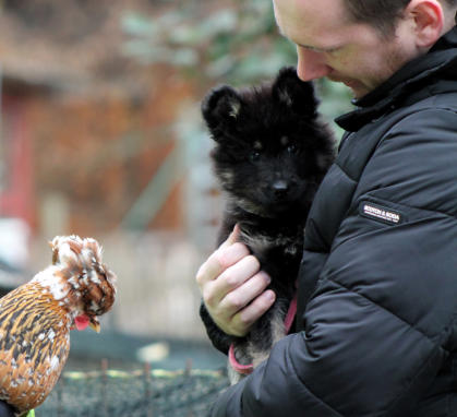 sieben Wochen alt Wir haben unseren Welpen einwenig von der grossen Welt gezeigt, dies -wie bereits seit vielen Jahren- auf dem Bauernhof von Corinne, Jürg, Andri und Yanik Baumann in Oberhallau Die kleinen Hunde durften mit ihren zukünftigen Besitzern oder Betreuern ganz sachte und beschützt anderen Tierarten begegnen. Die stolzen Besitzer konnten bei dieser Gelegenheit ihren Welpen wieder einwenig mehr kennenlernen, was wiederum die Bindung bereits stärkt. Corinne, ich danke Dir aus tiefstem Herzen, dass Du diese unbeschreiblich wertvolle Erfahrung immer möglich machst für uns!