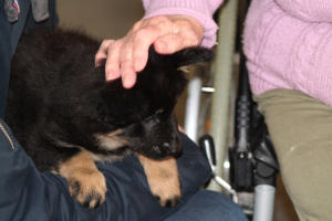 Unsere Rasselbande ist 8 Wochen alt Wir haben mit ihnen einen Ausflug ins Altersheim Schleitheim gemacht, zur riesigen Freude der Bewohner und auch des Personals